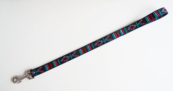 Keep your four-legged friend safely at your side with this short traffic dog lead. This short design lead allows you to retain close control of your dog, especially useful in crowded areas or near traffic, & an invaluable aid in training your dog to walk to heel. in 25mm wide, 3mm thick Aztec pattern webbing with a strong heavy clip suitable for larger size dogs. Overall length of 24 / 61cm. 25mm Webbing Short Traffic Dog Lead – Large Aztec