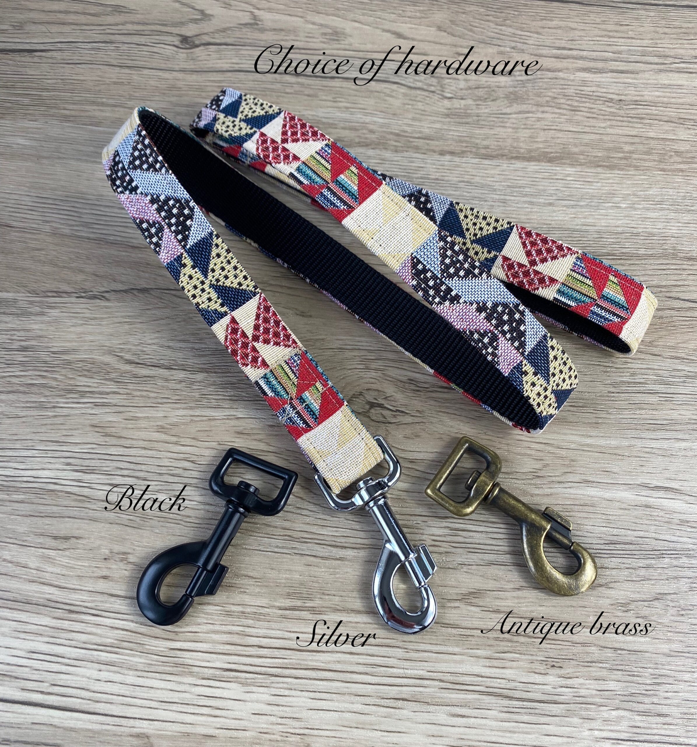 This handcrafted dog lead is handmade in wiltshire uk Abstract Dog Lead, Optional Matching Collar Available, Green, Red
