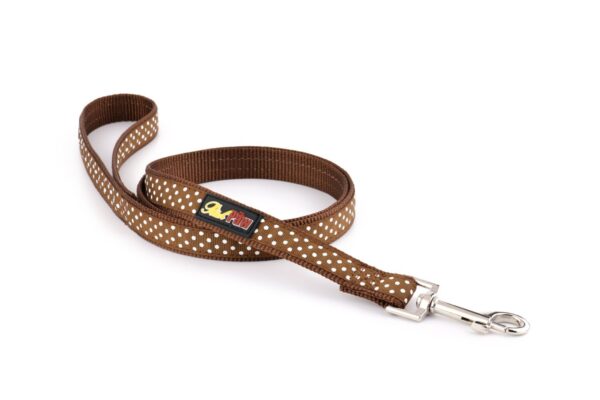Quality – Strong – Free Delivery! These trendy Polka Dot dog leads have been beautifully crafted by hand using strong Nylon webbing & quality hardware. Available in small, medium & large, they can be purchased singularly or complete as a set (see our Etsy shop). Simply clip to the reinforced ‘D’ loop on the matching collar to securely fasten, without fuss, ready to walk your dog in style! Size Chart (cm’s) S – Lead Length = 120cm S – Lead Width = 1cm M – Lead Length = 120cm M – Lead Width = 1.5cm L – Lead Length = 120cm L – Lead Width = 2cm Size Chart (inches) S – Lead Length = 48 S – Lead Width = 3/8 M – Lead Length = 48 M – Lead Width = 5/8 L – Lead Length = 48 L – Lead Width = 7/8 Matching Collars available in our Etsy Shop. Brown Polka Dot Dog Lead – Puppy & Spotti By Richpaw Matching Collars Available