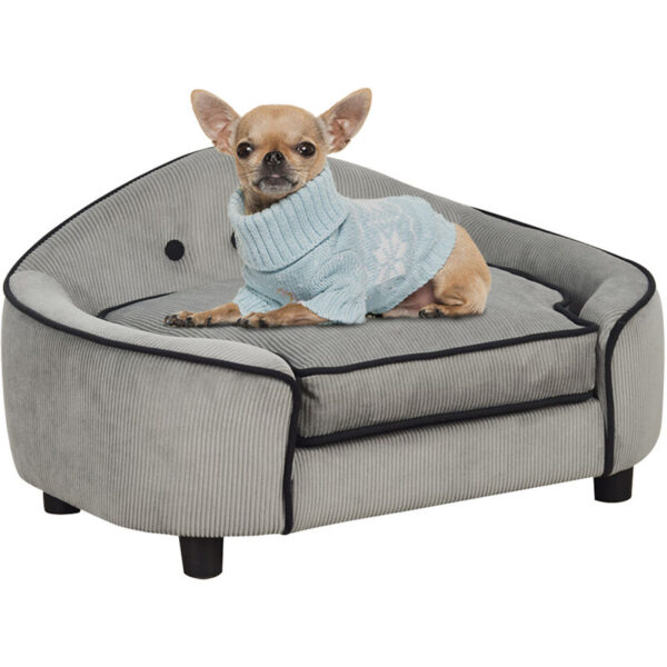 This dog couch from PawHut is made for cats or dogs to lounge in luxury. The frame is made from wood, making it solid and stable during everyday use, and it’s crafted into a large oval shape, giving them plenty of resting room. The corduroy-feel upholstery is soft to the touch, and it’s fitted with a thick cushion for them to lie on comfortably. Black piping on the seams provides a stylish contrast, and this grey dog bed is finished with four thick feet to keep the balance of the frame. Specifications: ● Item name: Pet Sofa – Brand: PawHut – Colour: Grey – Materials: Wood, plush and sponge – Dimensions: 35.5H x 66.5L x 45Wcm. Seat: 20H x 52.5L x 37.5Wcm. Cushion: Size: 10H x 49.5L x 36Wcm – Weight Capacity: 15 kg – Net weight: 4.6 kg – Flat pack: Yes -Certification: BS5852 – Custom label: D04-141 Features: ● Modern and on-trend design, with grey corduroy upholstery and black piping on the seams – Sturdy wood frame for a robust structure suitable for everyday use – Padded and removable