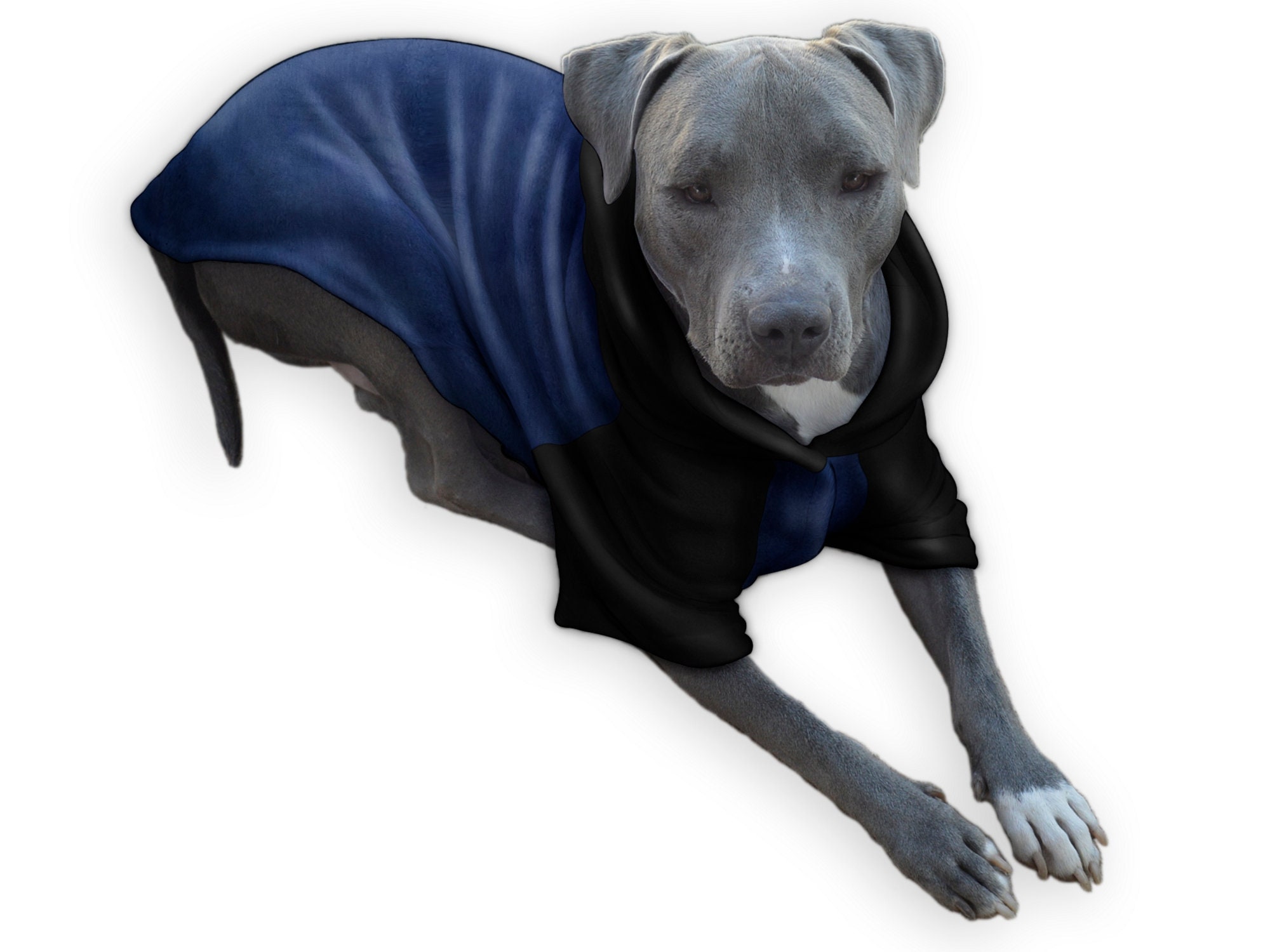 Christmas deadline Dec. 8th (No rush order available) This listing is for Navy Blue & Black Fleece Fabric To see more style & fabric options please check out other listings or visit BigDogsCloset.com Don’t forget the 20% off discount code Get it here: BigDogsCloset.com/Etsy20 Keep your puppies warm & stylish – a great addition to their wardrobe Individually custom made – for the maximum comfort & fit Snap buttons on the front opening – for easy access Never use Velcro – as you know how messy it can be with all the dog hair Opening behind the hood – for dog leash to go through SIZE: Type in the measurements & let us worry about the size. If the Chest Measurement is 31, size XL will fit perfectly, 2XL will be too big. If the Neck & Chest measurements are within the size 2XL, but the Back measurement is bigger than 2XL, select 2XL & lets me know, I will make it longer. Size 3XL will be too big. The same goes with the Neck measurement. Neck Girth where the collar naturally seats Chest Girth the largest part around the chest Back Length from the collar to right before the tail Still not sure? Message me the measurement before purchase. STYLE: There are 4 style options for you to choose from as the photos above Collar/ Full Body Collar/ Half Body Hood/ Full Body Hood/ Half Body For more lifestyle photos about the style, check out my other listings & reviews. SHIPPING: I will message you when we start to process your order. We usually finish the products within 1-3 business days after we get your order. (May take extra days during the holiday season) I will message you when we ship your order. All shipments come with a tracking number. FABRIC: Quality is our priority. All the fabrics we offer are handpicked & washer/dryer suitable for the Gentle & Cold setting, so it’s convenient for you to care for & last longer. We change the fabric selection according to season & availability, so order soon before it runs out! If you have any questions, please message me here or email me at info@bigdogscloset.com I will reply within 12hrs. Large Dog Clothes, Navy Blue Pajamas, Big Fleece Sweater, Custom Made, Hoodie, Coat, Holiday Shirts