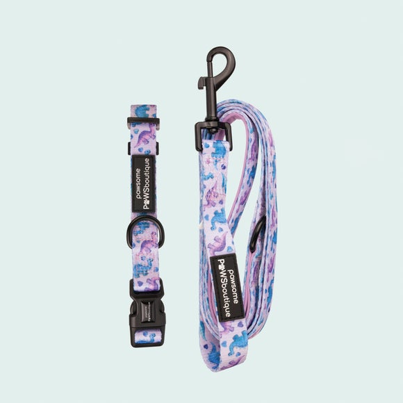 * Purple Dinosaur Design* Fully Adjustable* Heavy-Duty Back Clip* Sturdy D-Rings* Available in Multiple Sizes Dress your dog in style with our Tiny Diny Dog Collar and Lead Set! Adorned with a charming purple dinosaur design, this set is a blend of fashion and function. Fully adjustable and lined with neoprene for ultimate comfort, it’s perfect for everyday wear. The heavy-duty back clip and sturdy D-rings provide security during walks, and the set comes in multiple sizes to fit all furry friends.